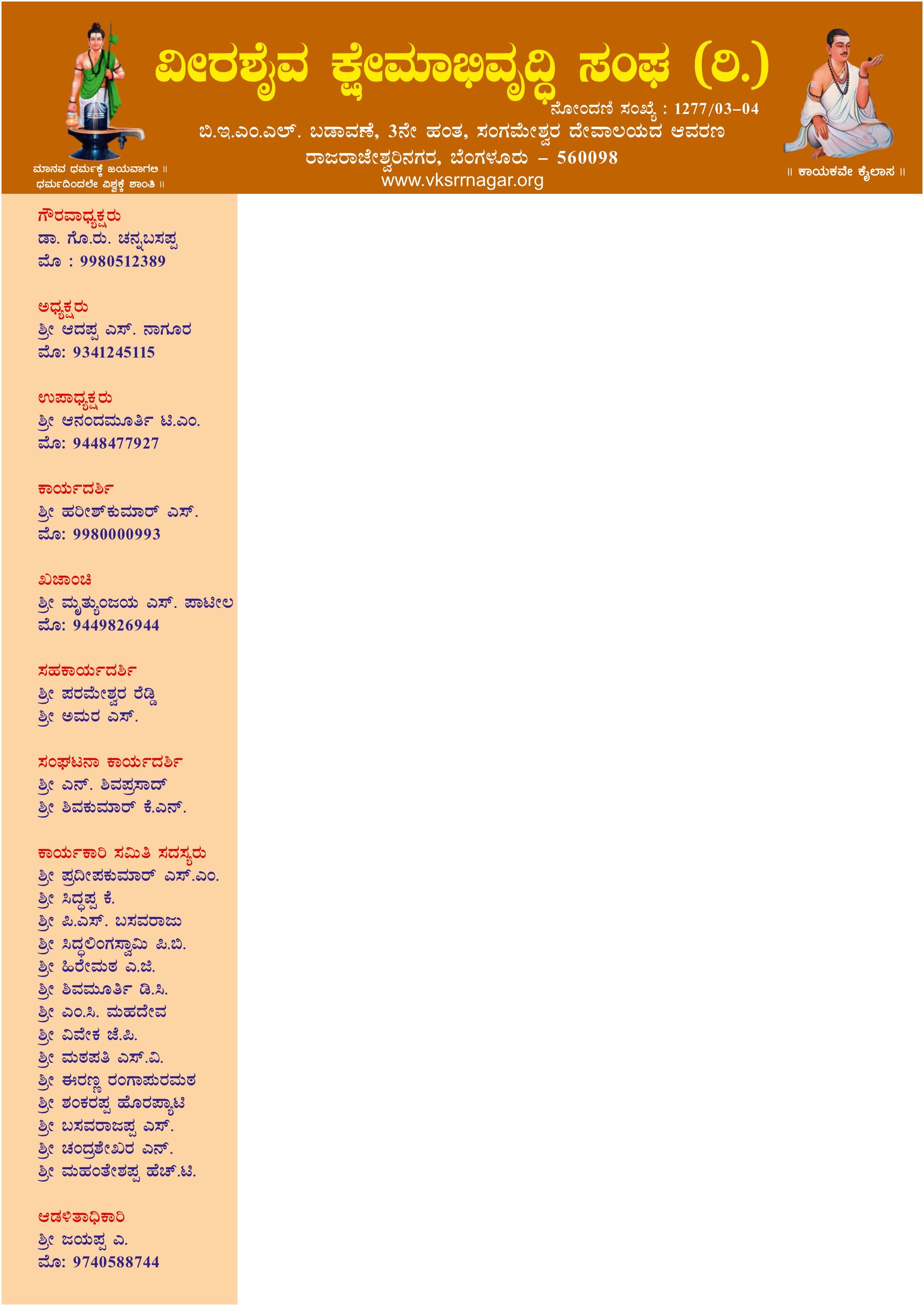 The Letter Head of Sri Veerashiva Lingayat Kshemabhivruddhi Sangha